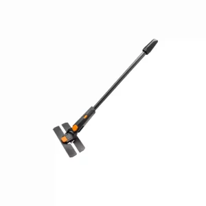 Der Anwender kann die Länge des Moppsystems je nach Vorliebe auf zwei Arten stufenlos verstellen: Am ergonomischen Knauf reicht ein einfacher Knopfdruck, eine weitere Möglichkeit gibt es in der Stielmitte durch Herausziehen des unteren Stielteils.
