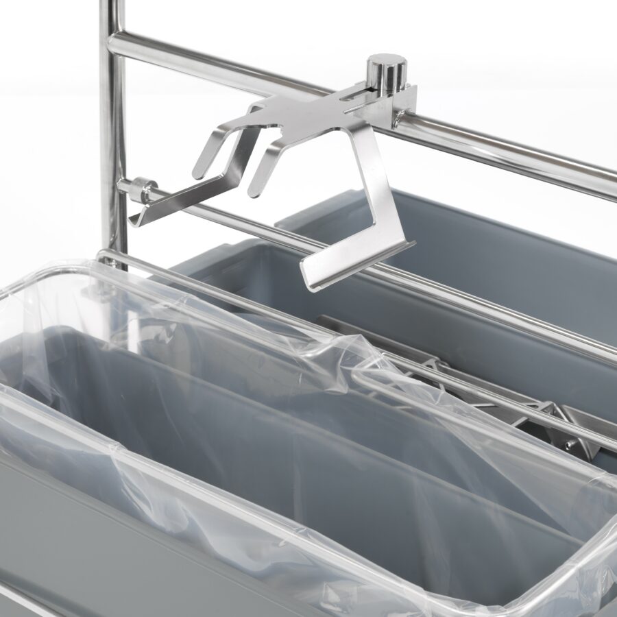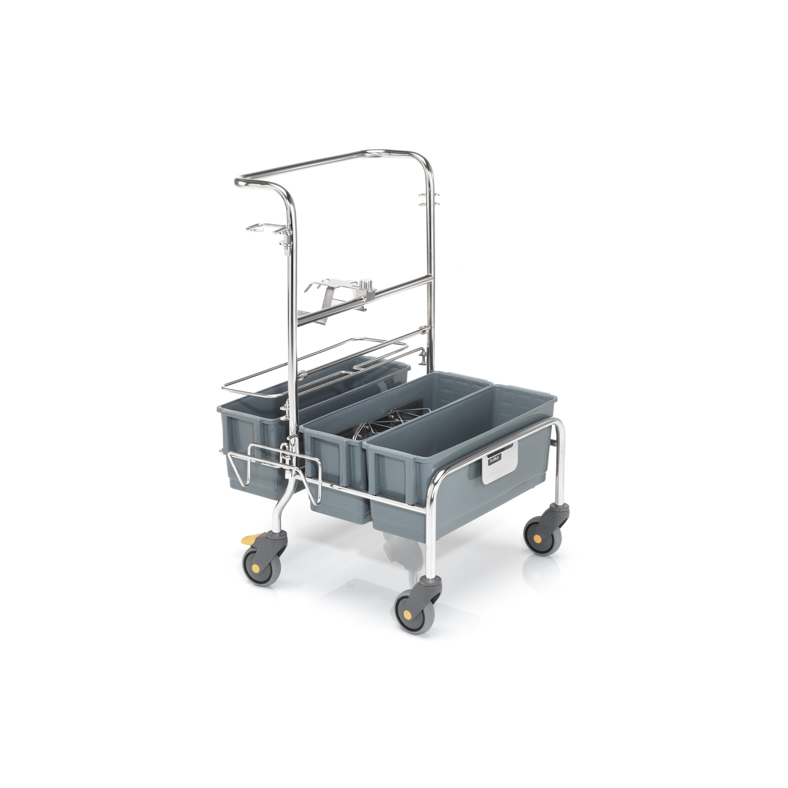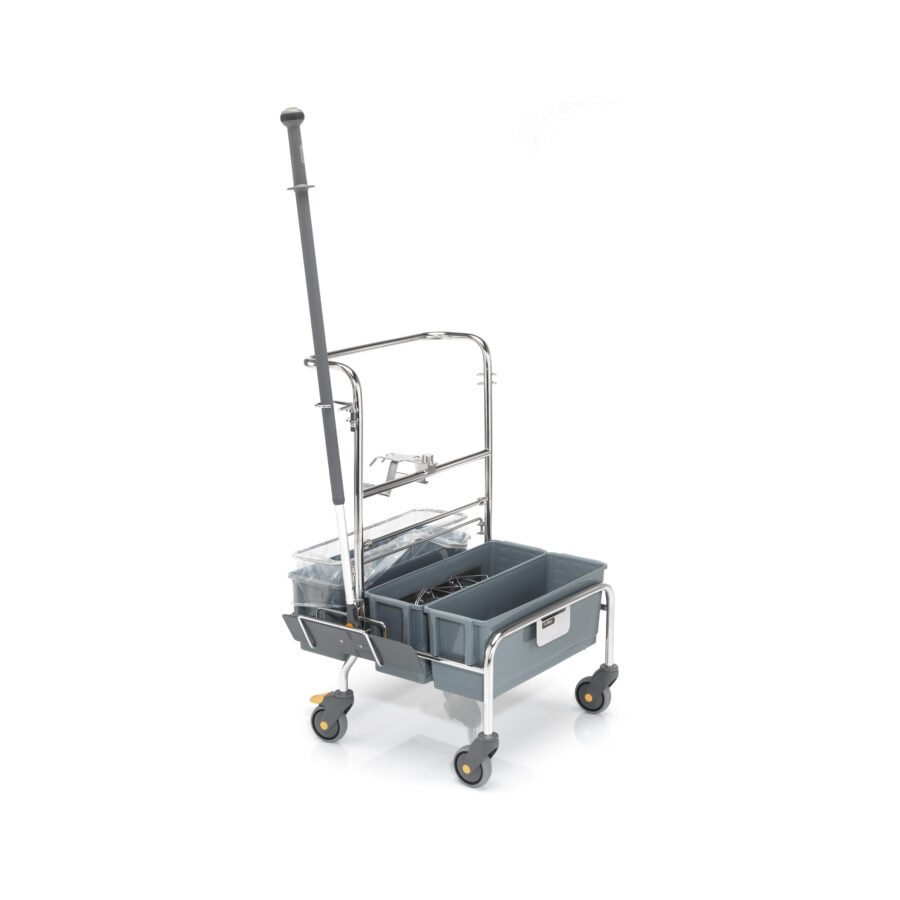 The 2.0 ERGO is a unique, touchless cleanroom cleaning system of the second generation with plastic buckets. In combination with user-friendly accessories and a selection of our PurMop® disposable or reusable mops this system combines ergonomic handling with a durable, cleanroom suitable design. The intelligent ERGO cleanroom cleaning trolleys set the highest standards of cleanroom cleaning. The innovative mop wetting device guarantees reproducible results and avoids excess fluid. The intelligent mop discarding mechanism enables a contact-free discarding of used mops.