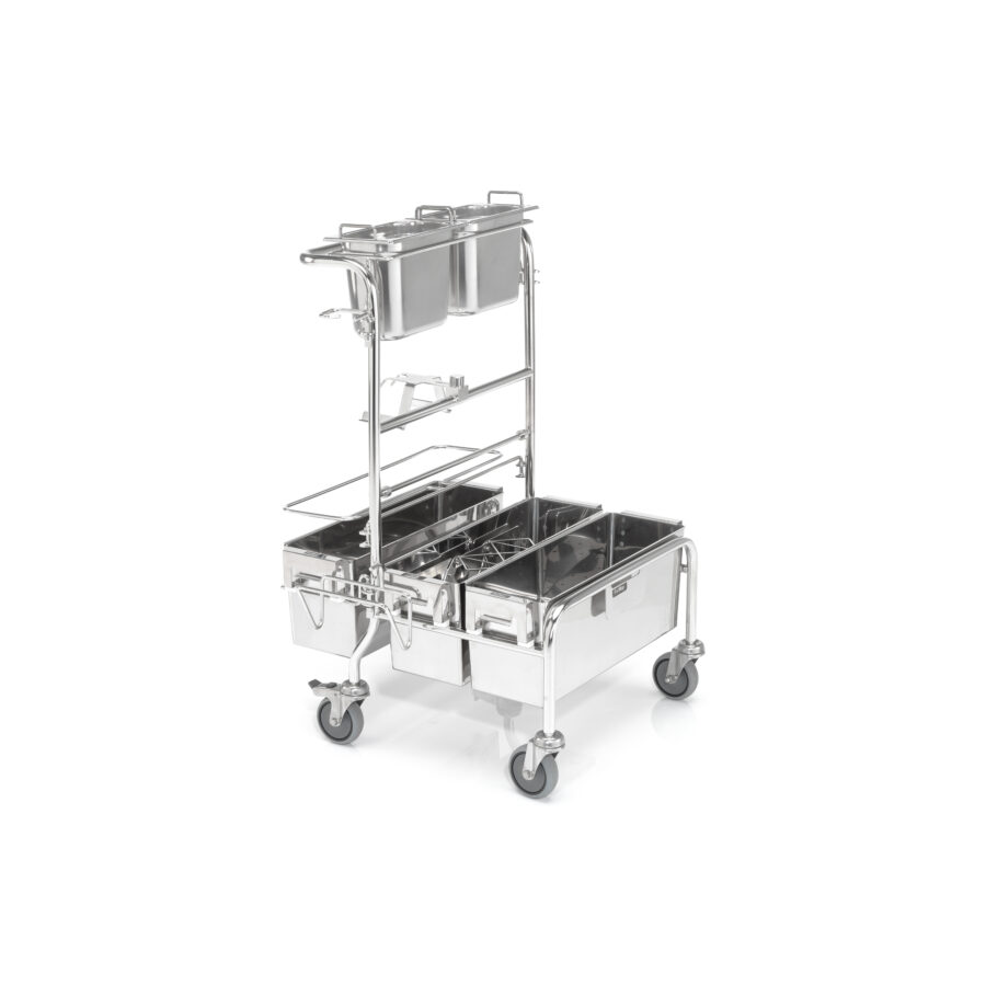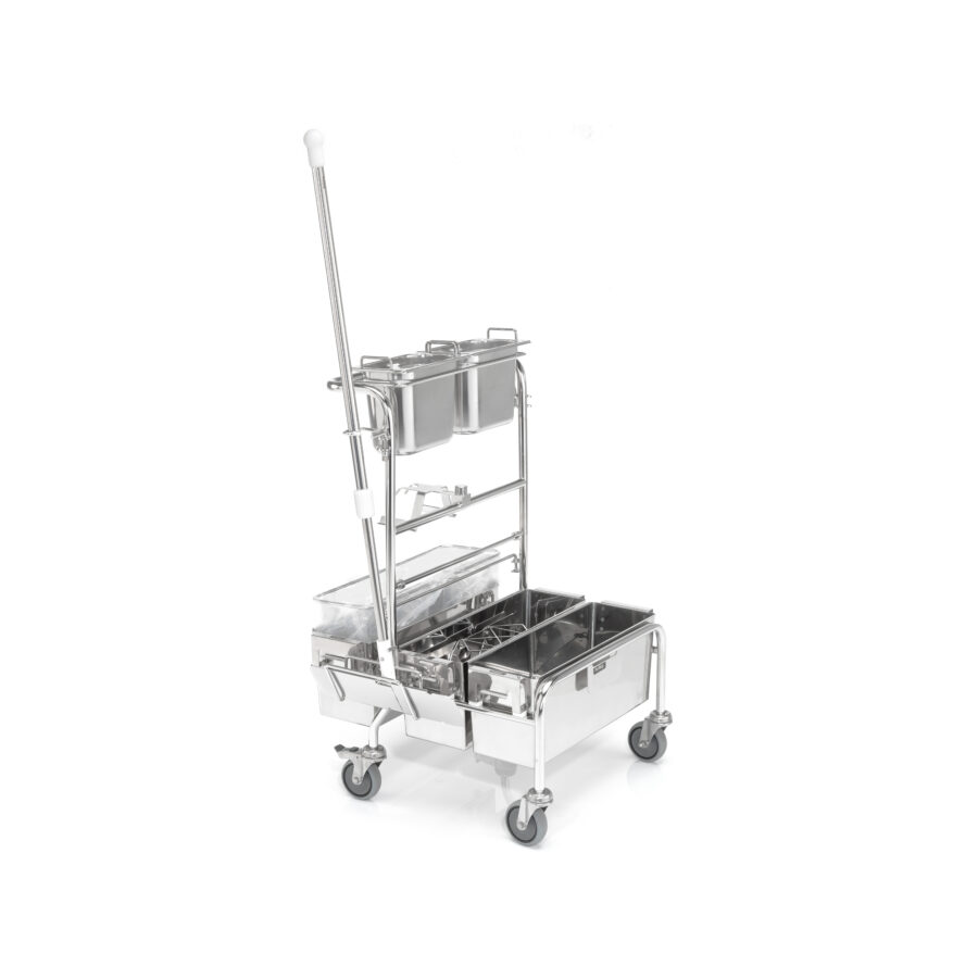 The 2.0 ERGO-S is a unique, touchless cleanroom cleaning system of the second generation made of high quality stainless steel. In combination with user-friendly accessories and a selection of our PurMop® disposable or reusable mops this system combines ergonomic handling with a durable, cleanroom suitable design. The intelligent ERGO cleanroom cleaning trolleys set the highest standards of cleanroom cleaning. The innovative mop wetting device guarantees reproducible results and avoids excess fluid. The intelligent mop discarding mechanism enables a hands-free discarding of used mops.