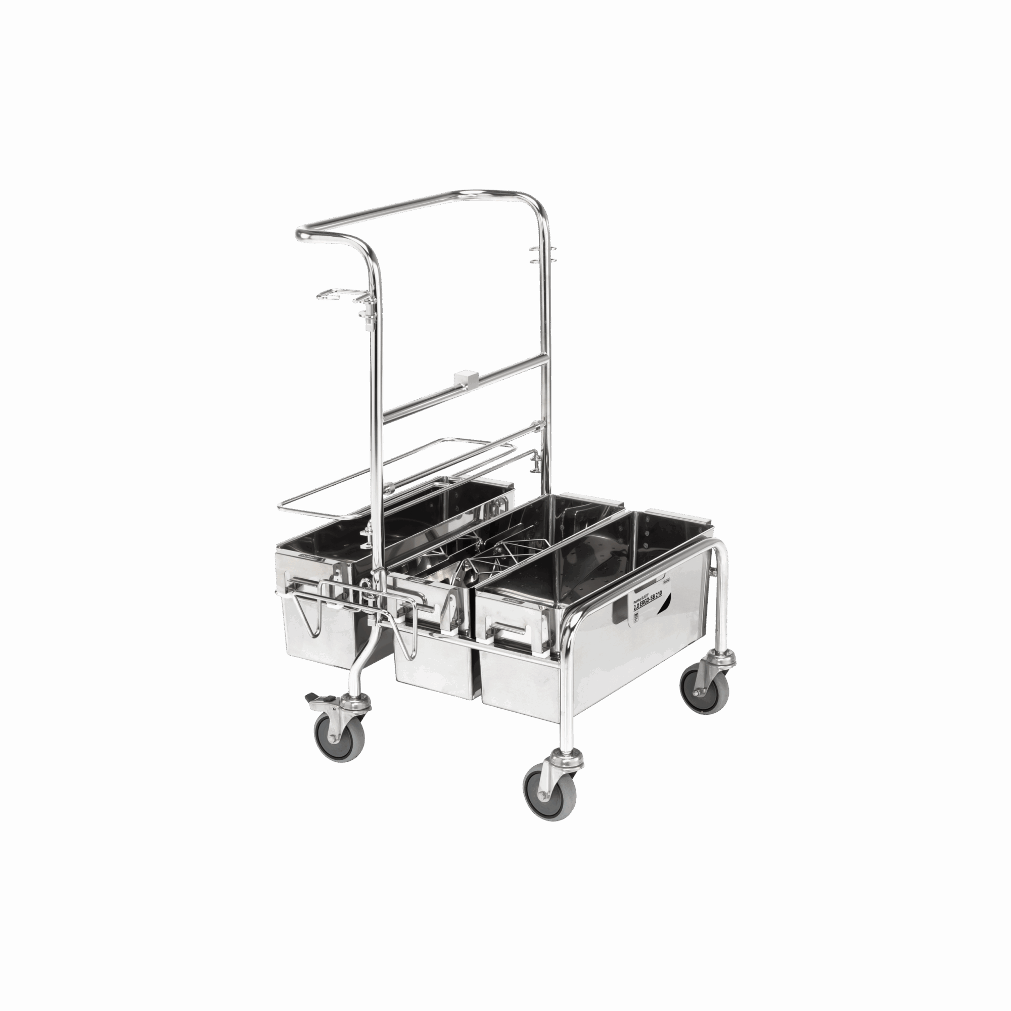 - Material: trolley: stainless steel 1.4301 / AISI 304, polished, PP plastic buckets | castors: thermoplastic polyurethane rubber