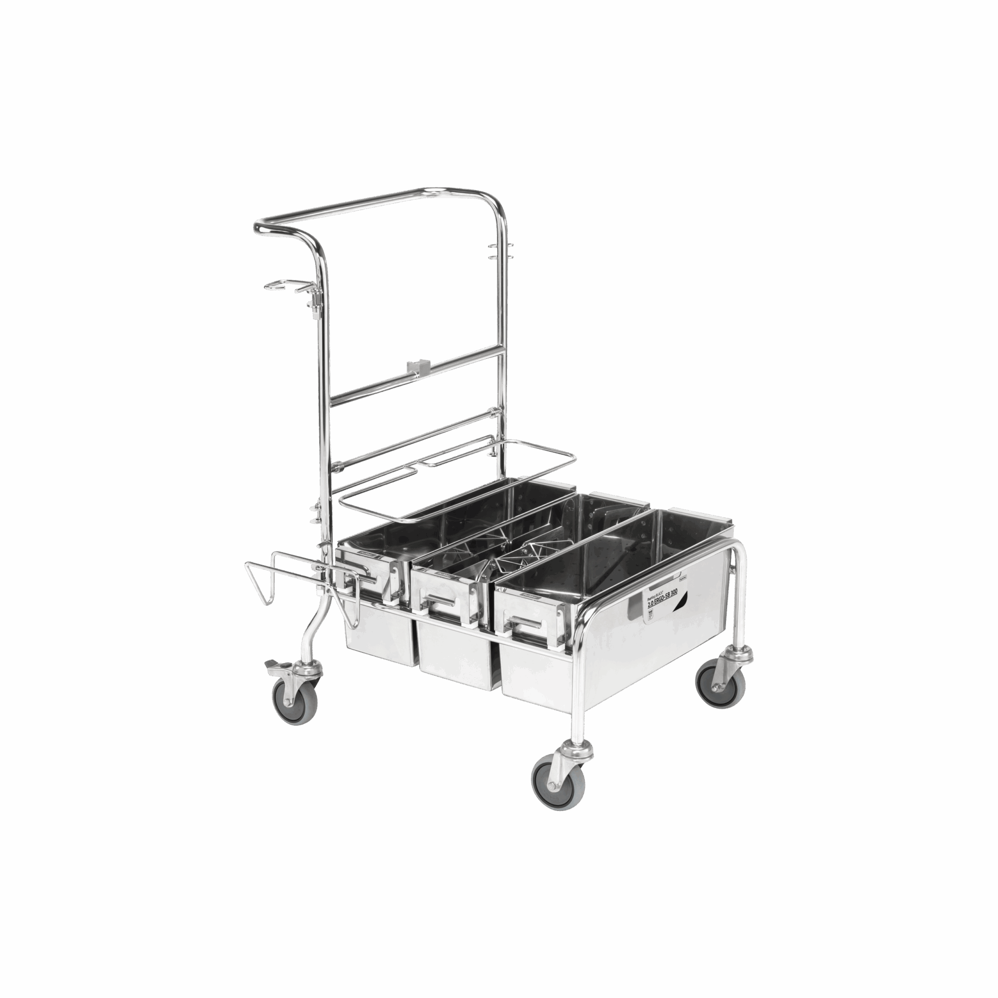 - Product material: trolley: stainless steel 1.4301 / AISI 304, polished, PP plastic buckets | castors: thermoplastic polyurethane rubber
