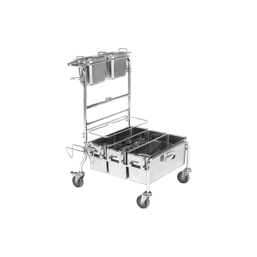 - Material: trolley: stainless steel 1.4301 / AISI 304, polished,| PP plastic buckets | castors: thermoplastic polyurethane rubber