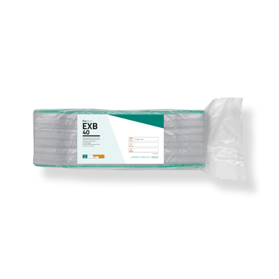 The innovative PurMop® EXB40 is a newly developed and specially economic mop for single use in cleanrooms. The special polyester scrub stripes loosen even tough residues and contaminants during wiping which are then safely picked up by the microfiber stripes. Thanks to its high absorption capacity for fluids it can achieve a superior surface coverage. The good price-performance ratio makes this mop a safe and effective alternative to reusable mops.