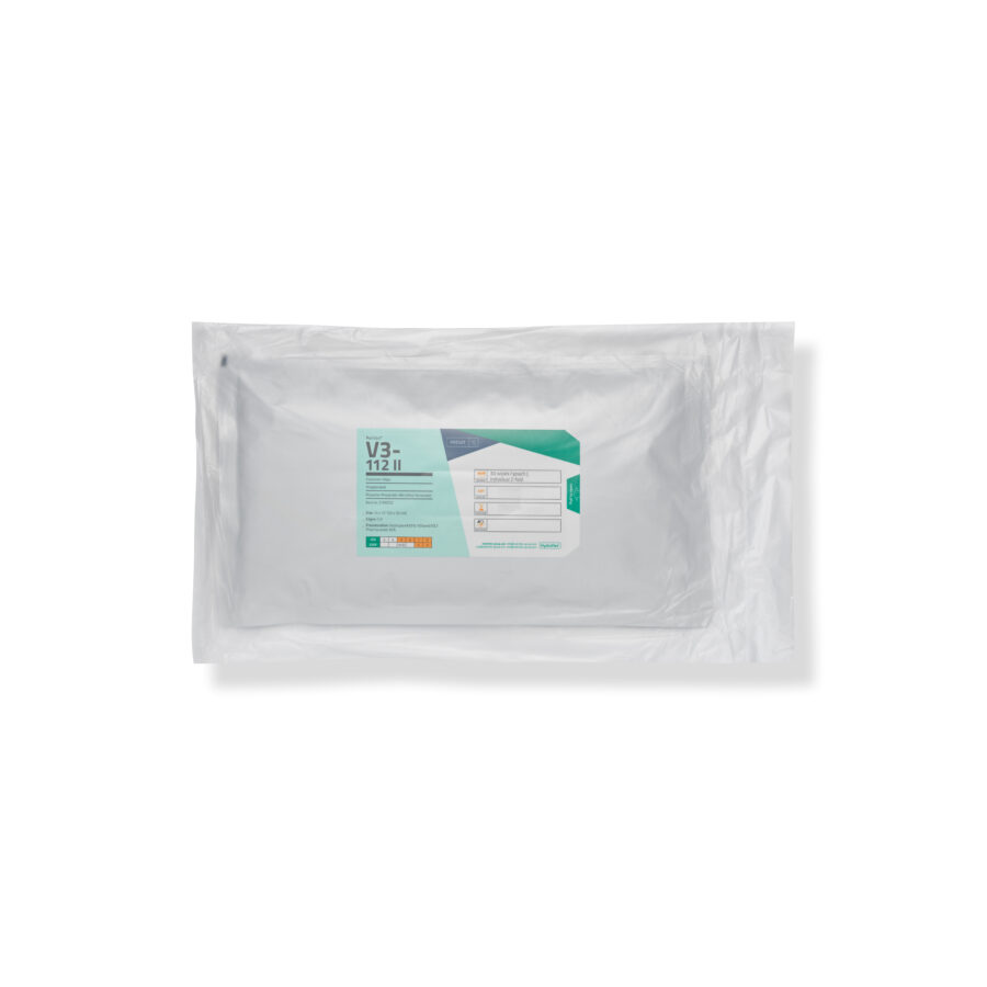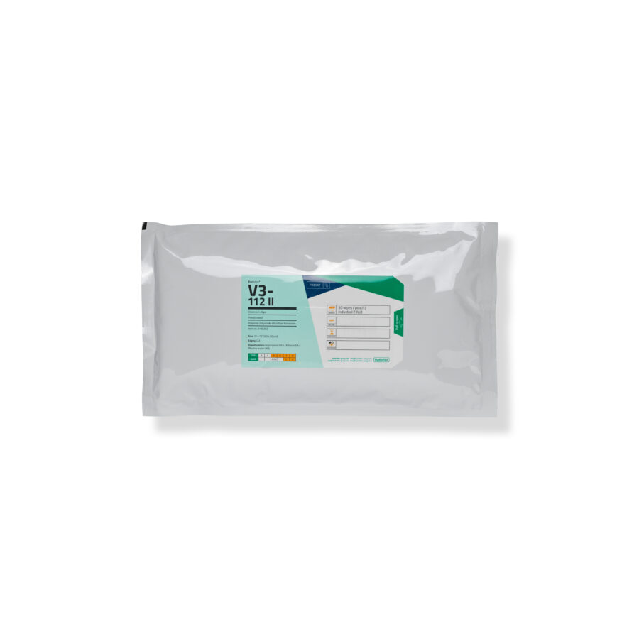 - Einsatzfertig vorgetränkt mit Isopropanol 65 % / Ethanol 5 % / Pharmawasser 30 % im wiederverschließbaren, VHP-beständigen Beutel, einzeln gefaltet
