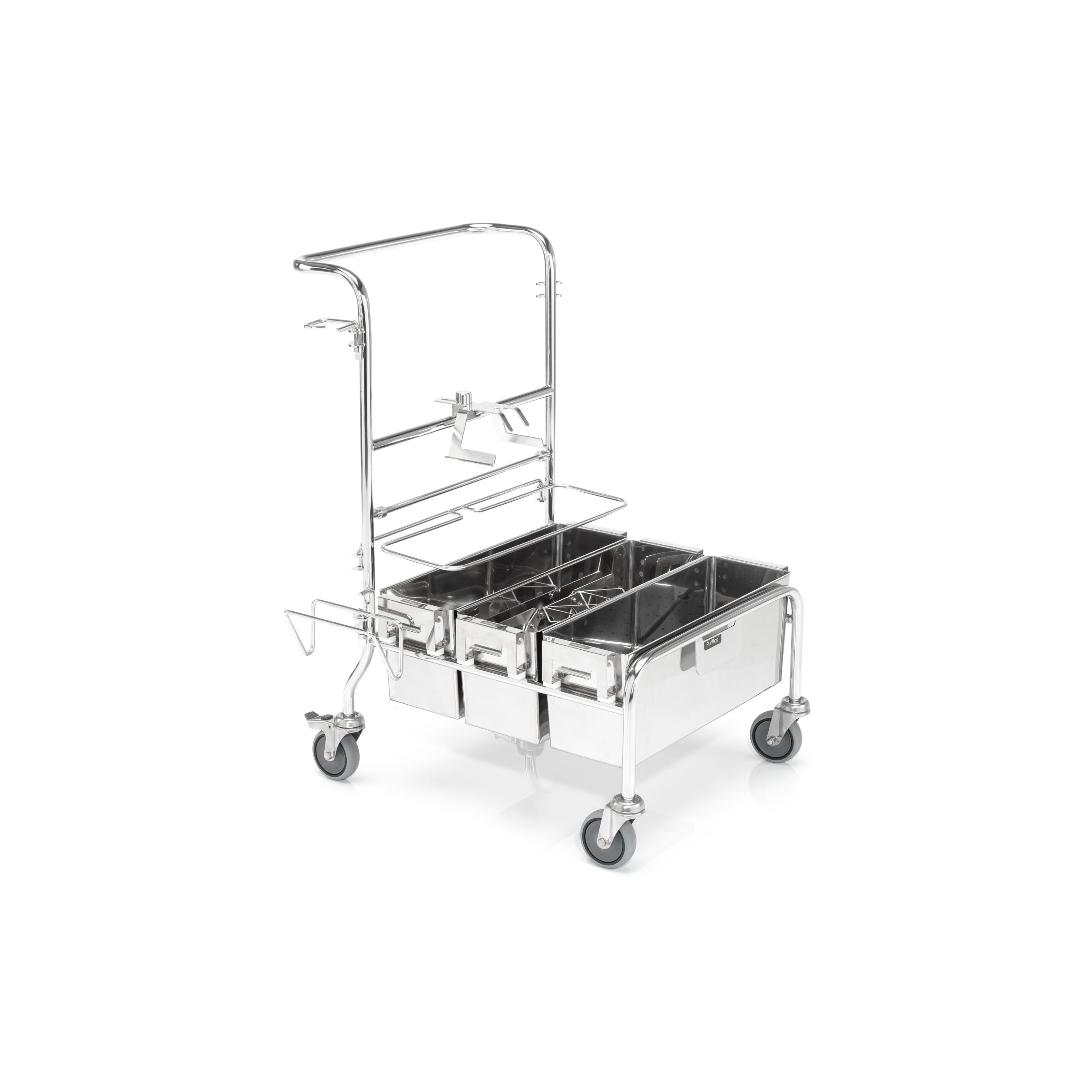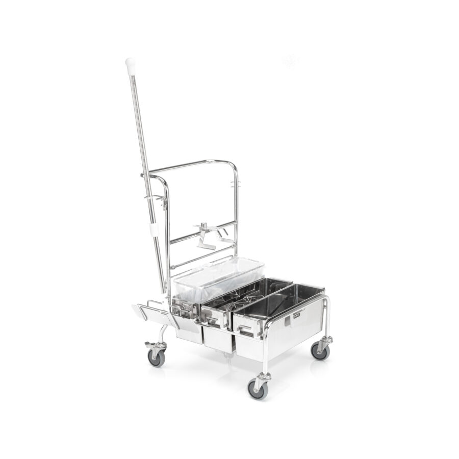 Der 2.0 ERGO-S ist ein Reinraum-Reinigungswagen der zweiten Generation mit Edelstahlwannen. In Kombination mit unserem benutzerfreundlichen Zubehör und den PurMop® Einweg- oder Mehrwegmopps verspricht dieses System ergonomische Handhabung mit einem langlebigen, reinraumtauglichen Design. Die ERGO Reinraum-Reinigungswagen setzen höchste Maßstäbe in der Reinraumreinigung. Die Dosiereinheit garantiert reproduzierbare Ergebnisse und vermeidet Flüssigkeitsüberschüsse. Die Mopp-Abwurfmechanik ermöglicht ein berührungsloses Abwerfen der gebrauchten Mopps.