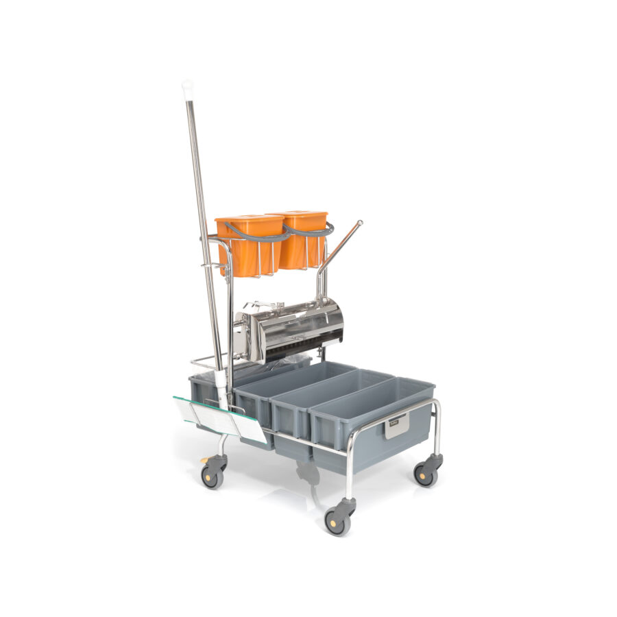 - Material: Gestell aus Edelstahl 1.4301 / AISI 304, poliert | PP Kunststoffwannen | Rollen aus thermoplastischem Polyurethan