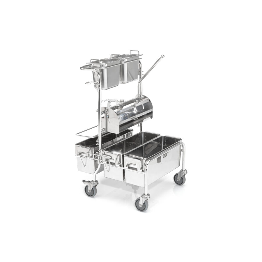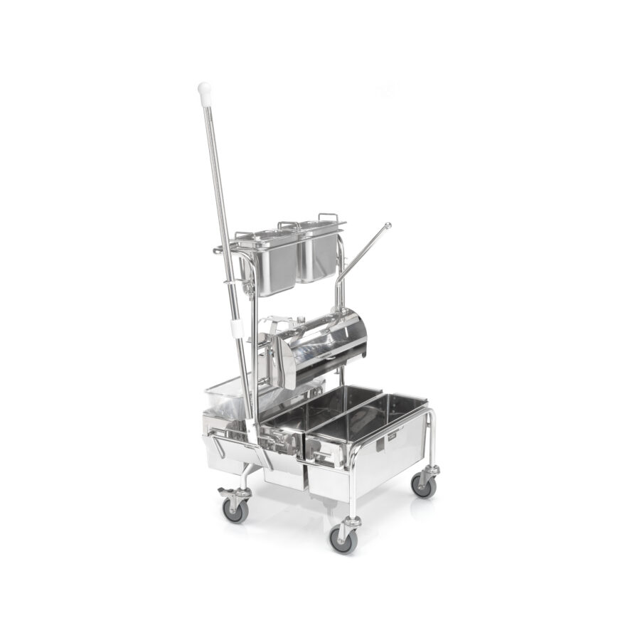 Der 2.0 TRIO ist ein ergonomischer Reinigungswagen mit Presse. Die PurMop® Presse wurde für den Einsatz in Reinräumen entwickelt und ist aus poliertem