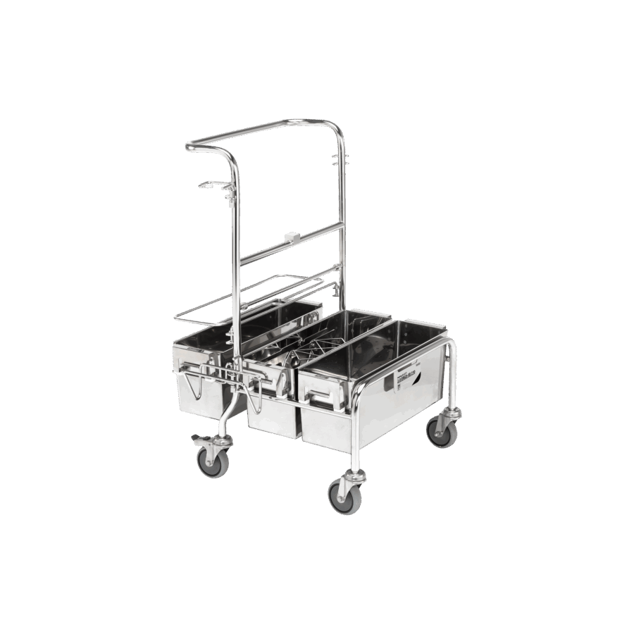 - 3 Edelstahlwannen á 18 Liter (2 x Vorderseite, 1 x Rückseite)