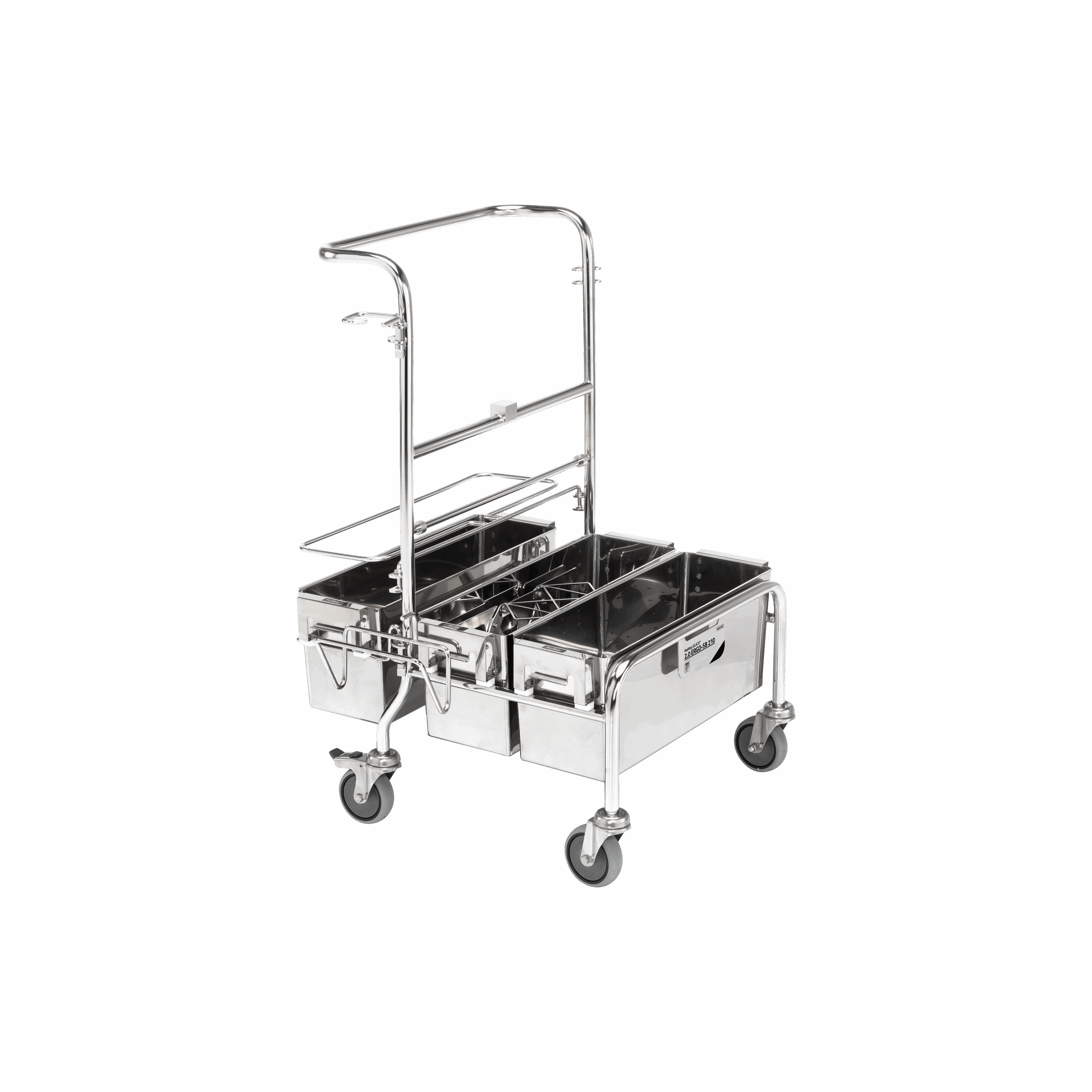 - Edelstahl Lenkrollen (fettfrei), zwei mit Feststellbremse