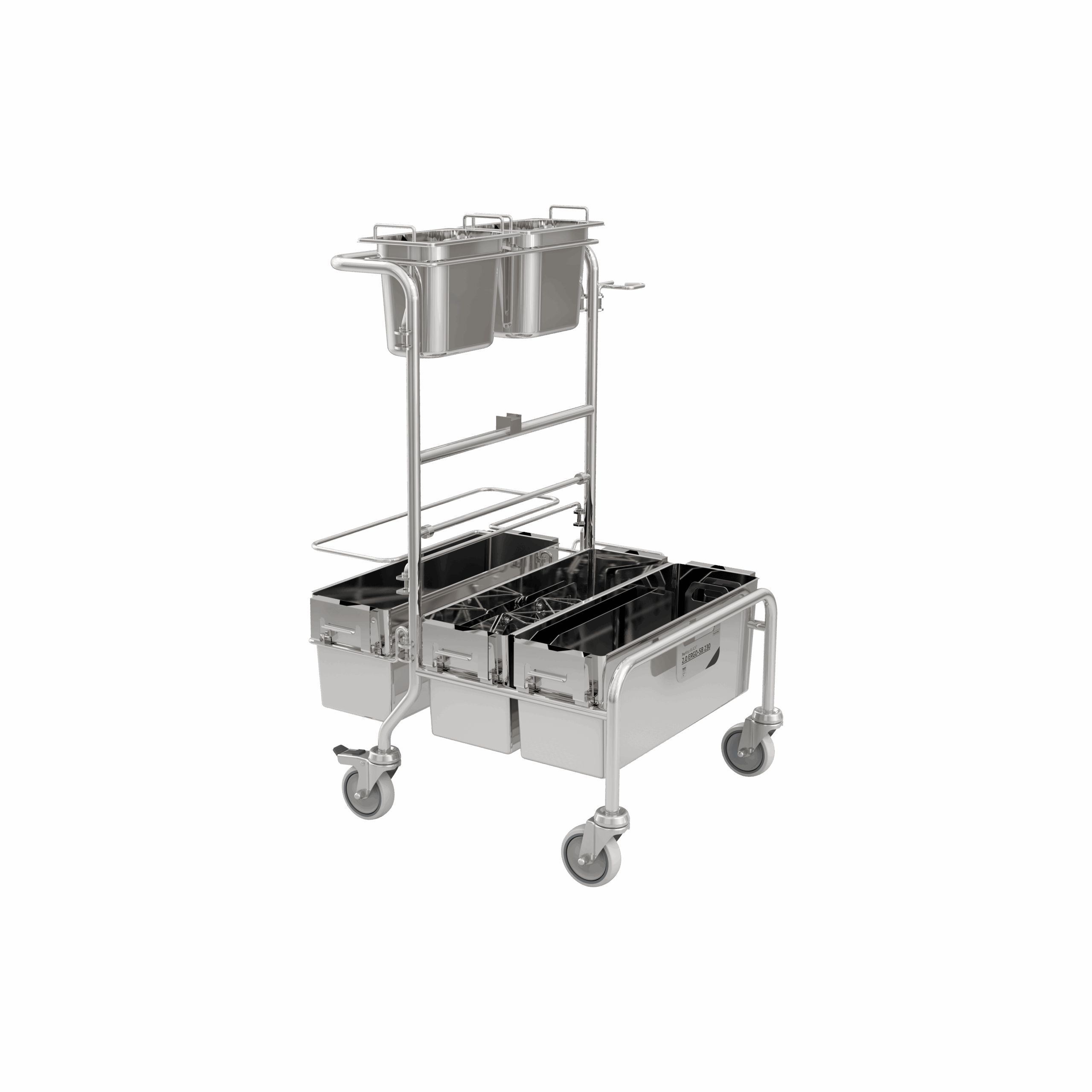 Der 2.0 ERGO-SB ist ein einzigartiges, berührungsloses Reinraum- Reinigungssystem der zweiten Generation aus hochwertigem Edelstahl. In Kombination mit den Carbon-Moppsystemen und passenden Reinraum-Mopps aus der PurMop BLACK® Performance Line verspricht dieses System ein ergonomisches Handling in einem langlebigen und reinraumtauglichen Design. Die Carbon-Moppsysteme ermöglichen das Öffnen des Mopphalters per Knopfdruck sodass keine Moppabwurf-Vorrichtung am Reinigungswagen notwendig ist. Die intelligenten ERGO Reinigungswagen setzen die höchsten Standards in der Reinraum-Reinigung. Die innovative Dosiereinheit garantiert reproduzierbare Ergebnisse und vermeidet Flüssigkeitsüberschüsse.