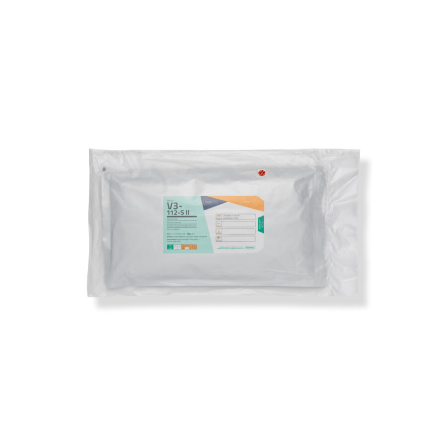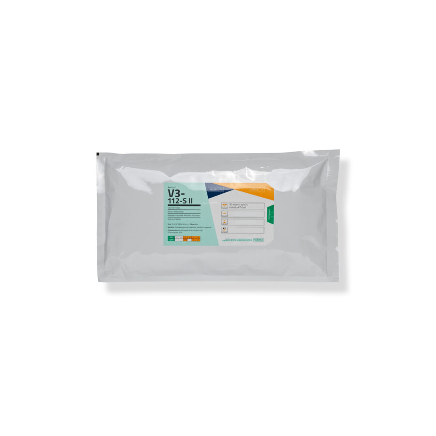 - Einsatzfertig vorgetränkt mit Isopropanol 65 % / Ethanol 5 % / Pharmawasser 30 % im wiederverschließbaren, VHP-beständigen Beutel einzeln gefaltet